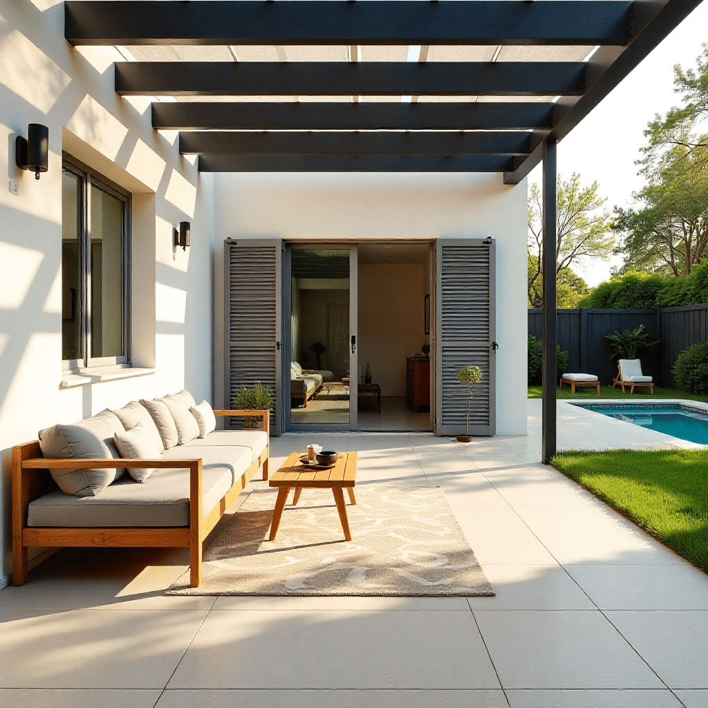 Le volet coulissant se distingue par son potentiel décoratif. Panneaux pleins pour une intimité totale, lames ajourées pour jouer avec la lumière, motifs découpés au laser : les options sont multiples pour créer un rendu unique. Les coloris s’accordent à l’ensemble de vos menuiseries, qu’il s’agisse d’un portail, d’une porte d’entrée ou de fenêtres en aluminium. Ainsi, chaque volet extérieur coulissant devient un élément architectural à part entière, valorisant le cachet de votre maison.